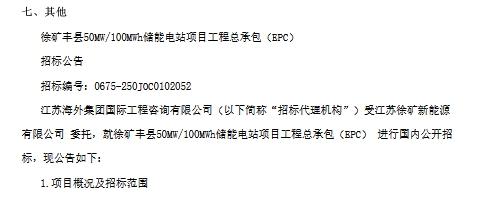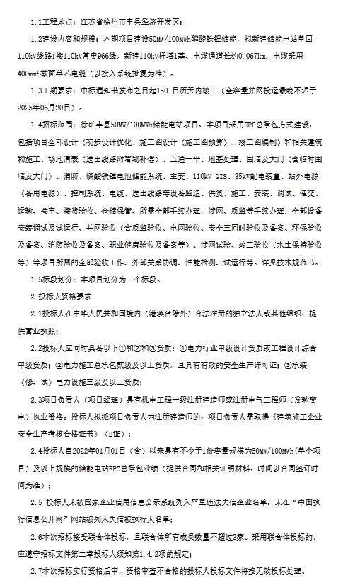 要求投標(biāo)人自2022年01月01日(含)以來(lái)具有不少于1份容量規(guī)模為50MW/100MWh(單個(gè)項(xiàng)目)及以上規(guī)模的儲(chǔ)能電站EPC總承包業(yè)績(jī)。