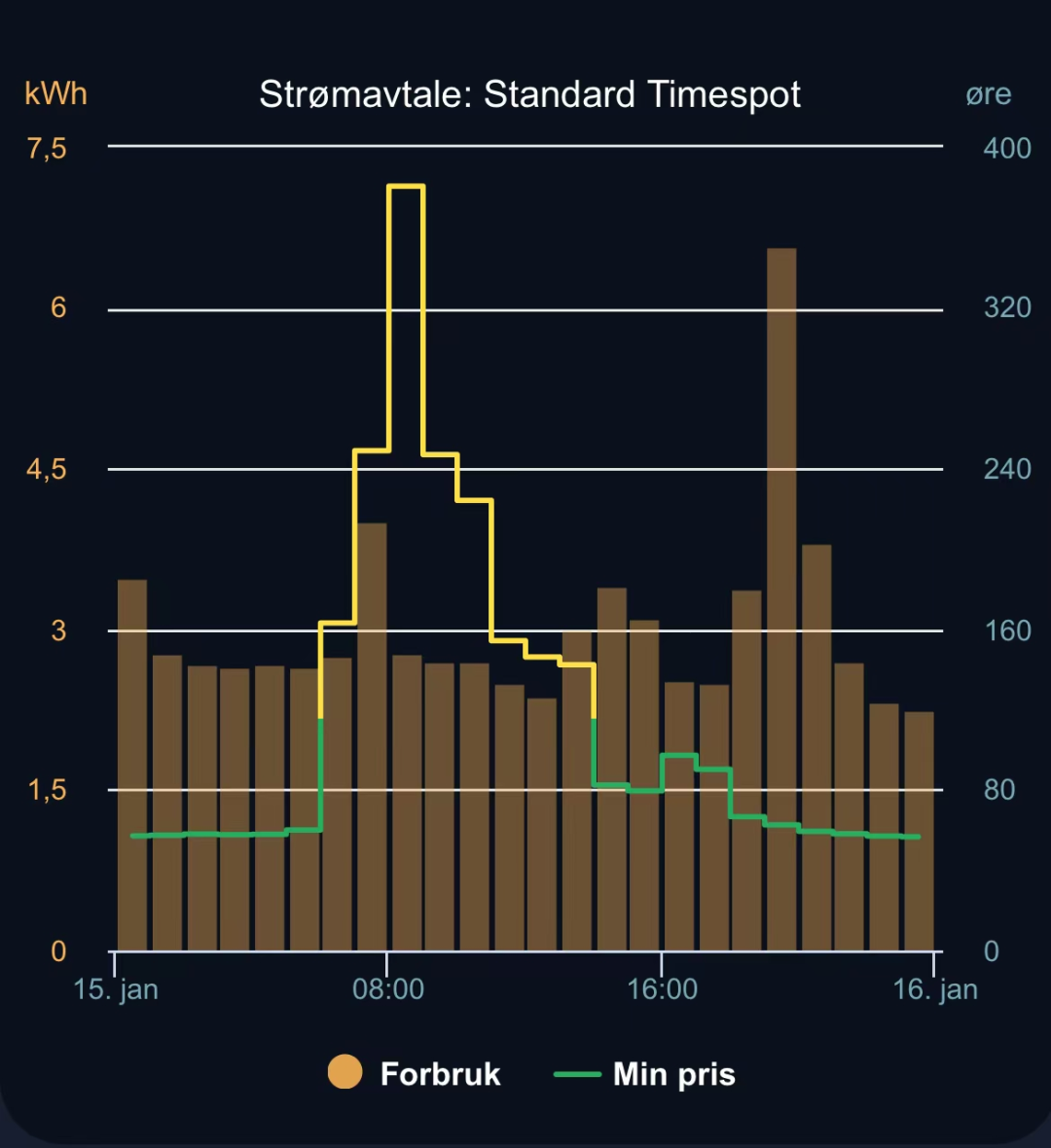 圖:挪威居民用戶1月15日的動態(tài)電價表