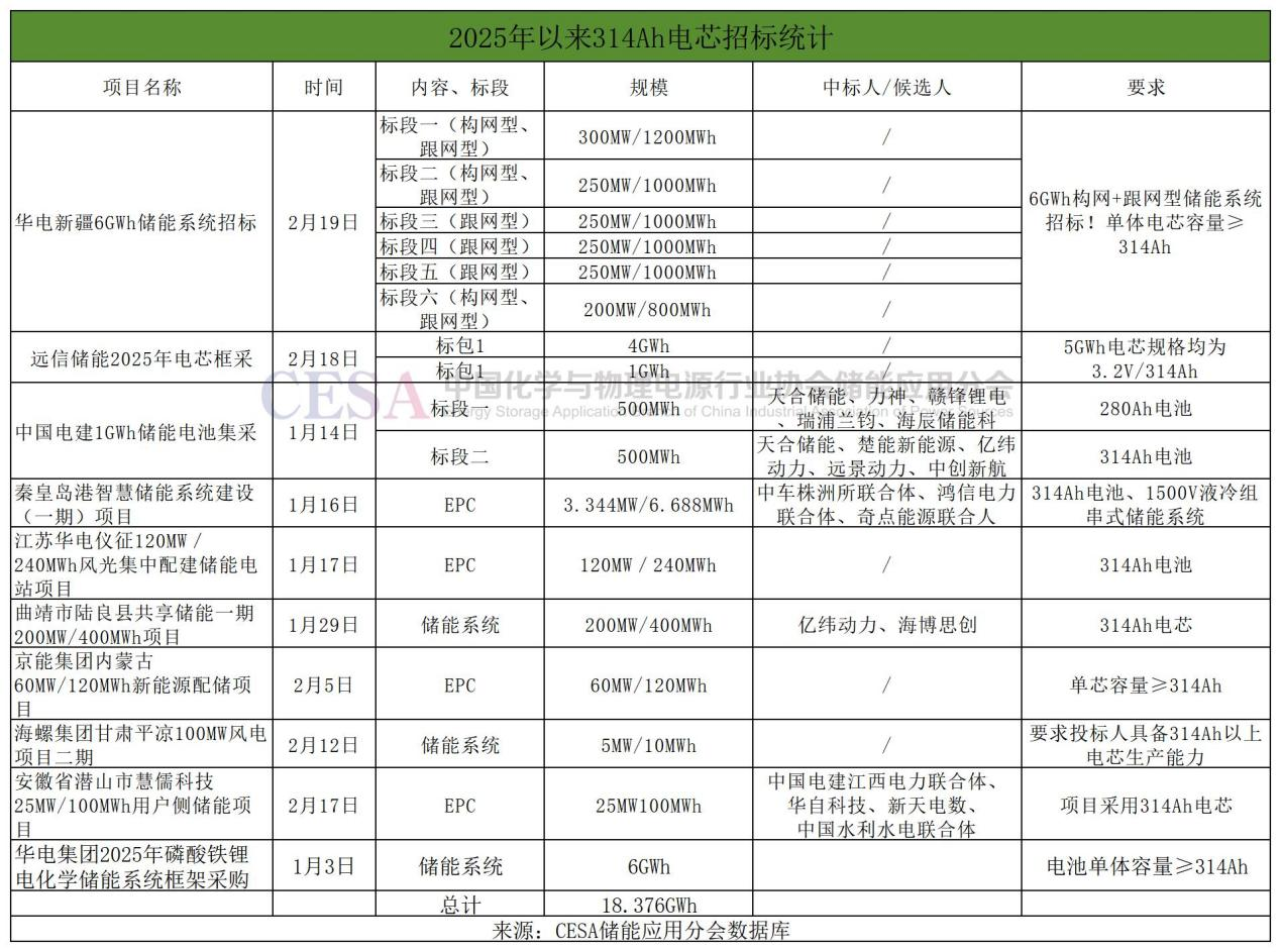一個明顯的趨勢是,GWh的314Ah電芯集采持續(xù)放量。