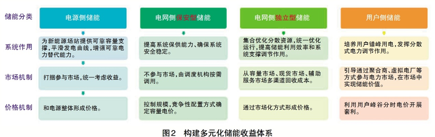 儲(chǔ)能價(jià)格形成機(jī)制。“十四五”以來,抽蓄行業(yè)加快發(fā)展建設(shè)步伐,以2022年為例,全國(guó)新核準(zhǔn)抽蓄電站48座、總裝機(jī)規(guī)模6889.6萬千瓦,為歷年來核準(zhǔn)規(guī)模最大的一年,超過前50年的投產(chǎn)總規(guī)模。作為建設(shè)新型電力系統(tǒng)的重要支撐,新型儲(chǔ)能發(fā)展也取得積極進(jìn)展,且相比抽蓄具有與電力系統(tǒng)源-網(wǎng)-荷各環(huán)節(jié)深度融合優(yōu)勢(shì),未來具備多元化發(fā)展應(yīng)用場(chǎng)景,但截至目前,新型儲(chǔ)能尚未形成成熟的商業(yè)模式。建議健全完善抽蓄、新型儲(chǔ)能等儲(chǔ)能價(jià)格形成機(jī)制,結(jié)合各類儲(chǔ)能技術(shù)特性、功能定位等,加快構(gòu)建多元化儲(chǔ)能收益體系,加強(qiáng)與電力市場(chǎng)有效銜接,引導(dǎo)儲(chǔ)能行業(yè)健康持續(xù)發(fā)展;特別是針對(duì)布局在關(guān)鍵電網(wǎng)節(jié)點(diǎn)、發(fā)揮系統(tǒng)性全局性調(diào)節(jié)保安功能的電網(wǎng)側(cè)儲(chǔ)能,可采取“區(qū)分類型、控制規(guī)模、適度支持、市場(chǎng)銜接”的方式,給予合理的容量電價(jià)支持(見圖2)。