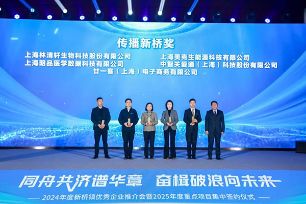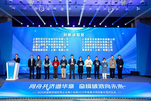 中國(guó)儲(chǔ)能網(wǎng)訊:2月26日,上海市松江區(qū)新橋鎮(zhèn)舉行2024年度優(yōu)秀企業(yè)推介會(huì)暨2025年度重點(diǎn)項(xiàng)目集中簽約儀式,對(duì)鎮(zhèn)域內(nèi)在科技創(chuàng)新、產(chǎn)業(yè)升級(jí)、黨建引領(lǐng)等方面表現(xiàn)突出的企業(yè)進(jìn)行表彰。松江區(qū)副區(qū)長(zhǎng)陳容,新橋鎮(zhèn)黨委書記黎軼,黨委副書記、鎮(zhèn)長(zhǎng)吳超峰,副鎮(zhèn)長(zhǎng)沈耀庭等領(lǐng)導(dǎo)出席會(huì)議。美克生能源作為新橋鎮(zhèn)優(yōu)秀企業(yè)代表參與活動(dòng),連獲“創(chuàng)新進(jìn)取獎(jiǎng)”和“傳播新橋獎(jiǎng)”兩項(xiàng)表彰。