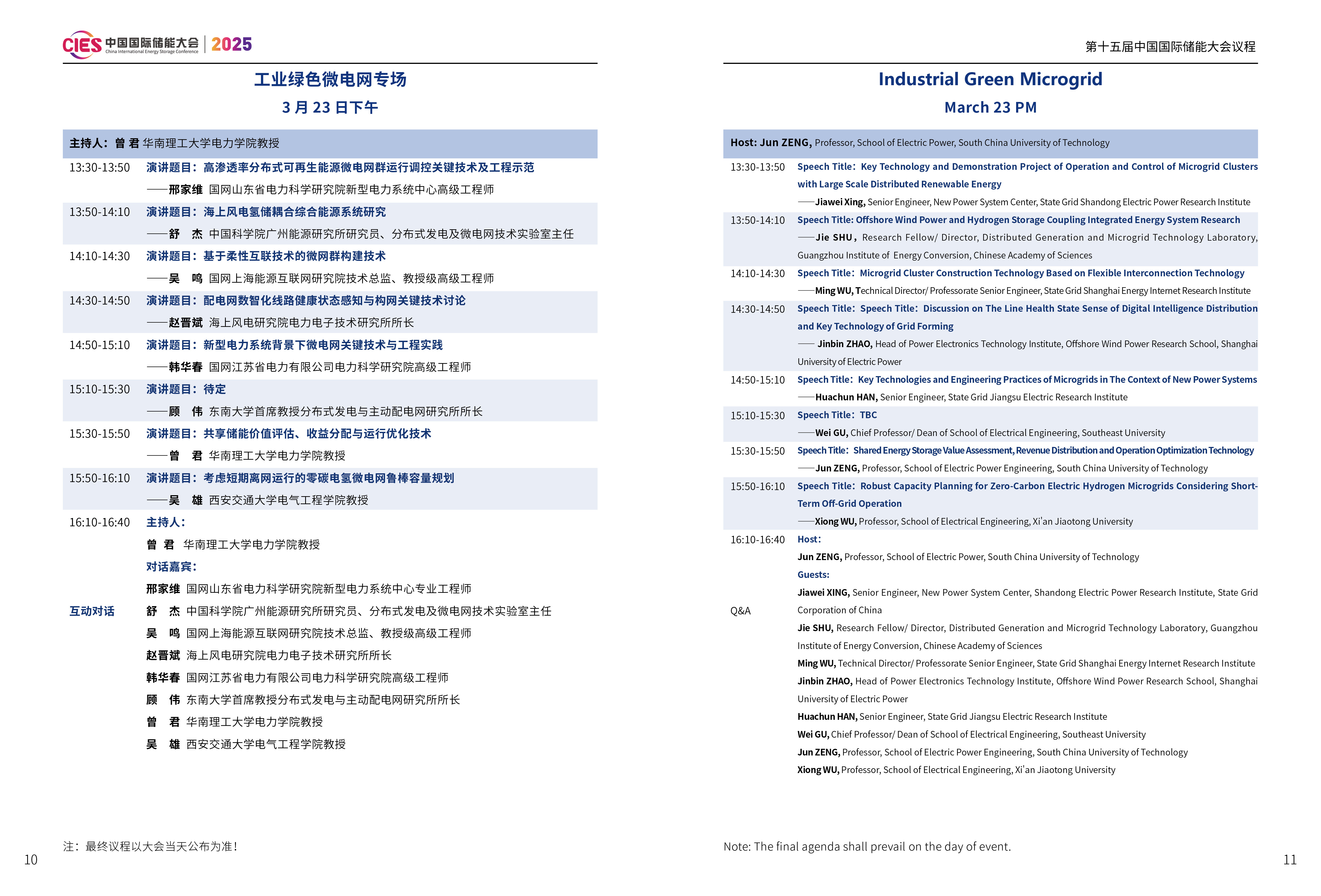 CIES2025儲能大會將設置:大會開幕式暨特邀院士專家報告、數(shù)智化配電網(wǎng)與新型儲能融合創(chuàng)新、新型電力系統(tǒng)與并網(wǎng)調度、新型儲能與新能源大基地協(xié)同發(fā)展、國際儲能、電力輔助服務、現(xiàn)貨交易及容量市場、工業(yè)綠色微電網(wǎng)、國家儲能標準宣貫、數(shù)智化新型儲能系統(tǒng)集成解決方案(上、下)、儲能消防、安全與檢測認證、新型儲能資本與投資、液流電池與長時儲能、混合儲能、全球化新型儲能供應鏈機遇與挑戰(zhàn)、數(shù)智化工商業(yè)儲能解決方案與商業(yè)案例、虛擬電廠與車網(wǎng)互動、海外儲能渠道開發(fā)與商業(yè)機遇、構網(wǎng)型儲能系統(tǒng)及項目建設、儲能專用電池與ESG、新品發(fā)布會等23個專場,以下為工業(yè)綠色微電網(wǎng)專場議程(最終議程以大會當天發(fā)布為準)。