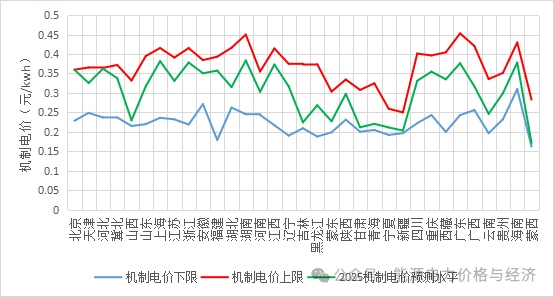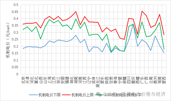 各省2025年集中式光伏機(jī)制電價(jià)水平預(yù)測(cè)如圖2所示。