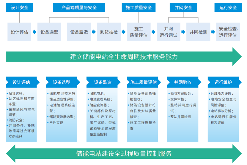 CQC具備儲(chǔ)能電站全生命周期技術(shù)服務(wù)能力,重點(diǎn)關(guān)注電站各環(huán)節(jié)的質(zhì)量安全和性能檢測(cè),致力于構(gòu)建儲(chǔ)能產(chǎn)品生產(chǎn)和電站建設(shè)全過程質(zhì)量控制和風(fēng)險(xiǎn)防控體系,助力儲(chǔ)能電站降本、提質(zhì)、增效、降碳。