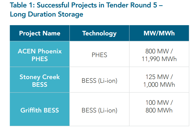在 AEMO Services 的競爭性招標評估流程之后,三個代表 1.03GW(13.79 GWh)長時儲能的項目已獲得長時能源服務(wù)協(xié)議 (LTESA)。