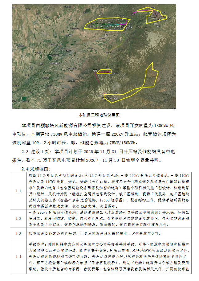 本項目計劃于2025年11月31日升壓站及儲能站具備帶電條件,整個75萬千瓦風電項目計劃2026年11月30日實現(xiàn)全容量并網(wǎng)。