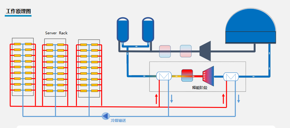·余熱利用:在蒸發(fā)器中吸收數(shù)據(jù)中心冷卻液的余熱,二氧化碳溫度升高并氣化。