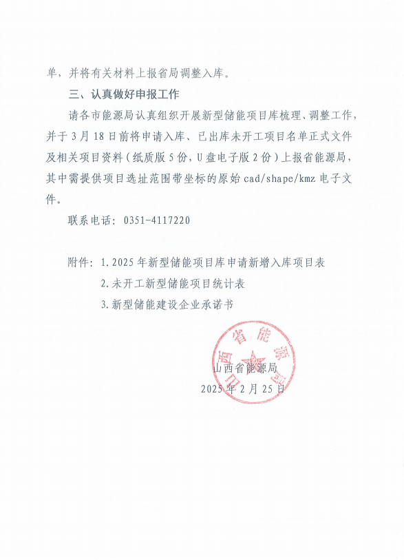 各市能源局需認(rèn)真組織開展新型儲(chǔ)能項(xiàng)目庫梳理、調(diào)整工作并于3月18日前將申請(qǐng)入庫、已出庫未開工項(xiàng)目名單正式文件及相關(guān)項(xiàng)目資料上報(bào)省能源局。