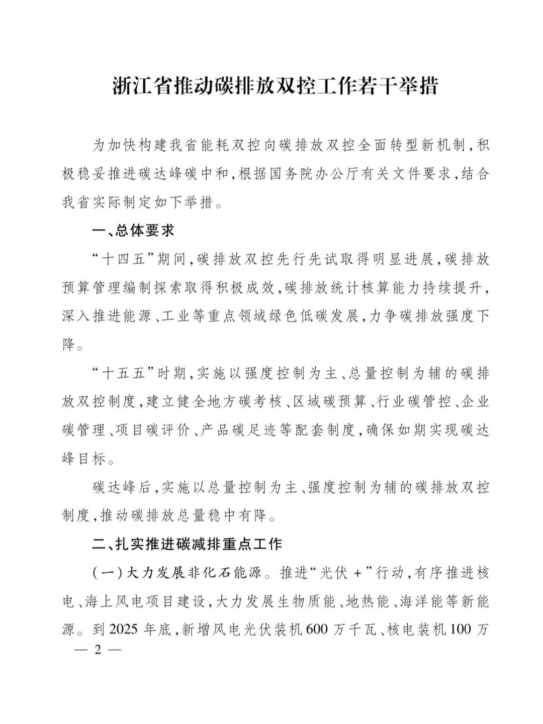 中國儲(chǔ)能網(wǎng)訊:近日,浙江省人民政府發(fā)布關(guān)于印發(fā)浙江省推動(dòng)碳排放雙控工作若干舉措的通知。