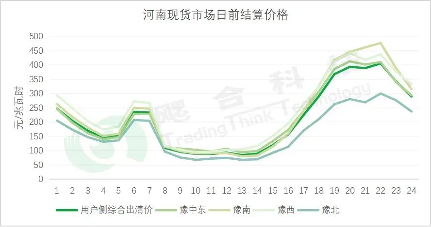整體來看,此次現(xiàn)貨試運(yùn)行全網(wǎng)日前市場算數(shù)均價(jià)為208.89元/兆瓦時(shí),全網(wǎng)實(shí)時(shí)市場算數(shù)均價(jià)為288.09元/兆瓦時(shí)。四個(gè)分區(qū)電價(jià)中,豫北區(qū)域各時(shí)點(diǎn)的日前、實(shí)時(shí)現(xiàn)貨均價(jià)最低,日前算數(shù)均價(jià)為164.10元/兆瓦時(shí),實(shí)時(shí)算數(shù)均價(jià)為245.70元/兆瓦時(shí)。