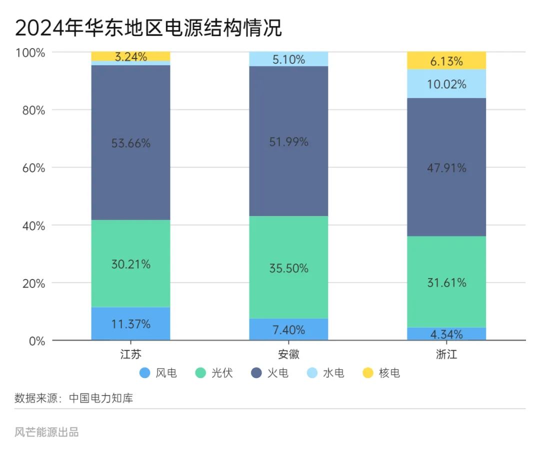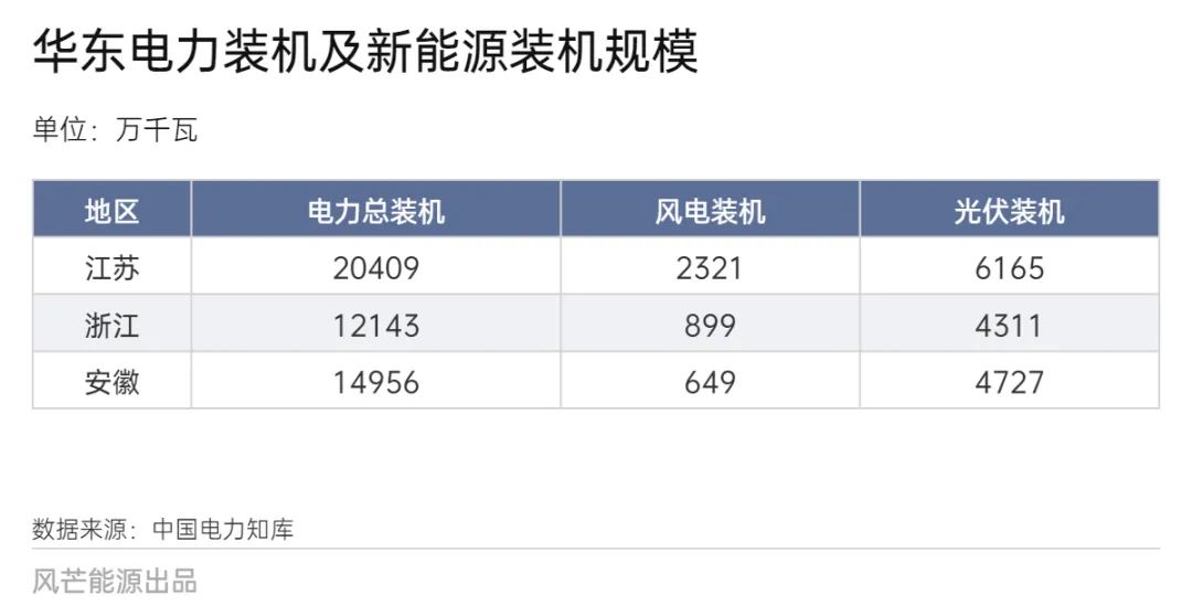 但值得一提的是,在新能源中,華東3省明顯更偏好光伏。除江蘇省外,安徽、浙江風(fēng)電裝機(jī)占比不足10%,但上述3省光伏裝機(jī)占比均超30%。