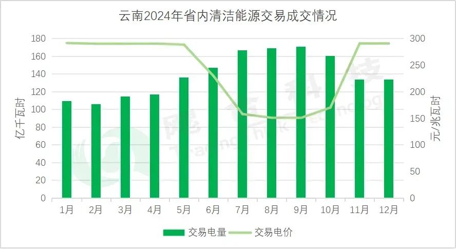 云南:2024年1-12月,云南省內(nèi)市場化交易電量共2101.67億千瓦時(shí),其中清潔能源交易成交電量為1664.71億千瓦時(shí),成交均價(jià)為231.76元/兆瓦時(shí);綠電交易成交電量為16.63億千瓦時(shí),電能量價(jià)格成交均價(jià)228.93元/兆瓦時(shí)。