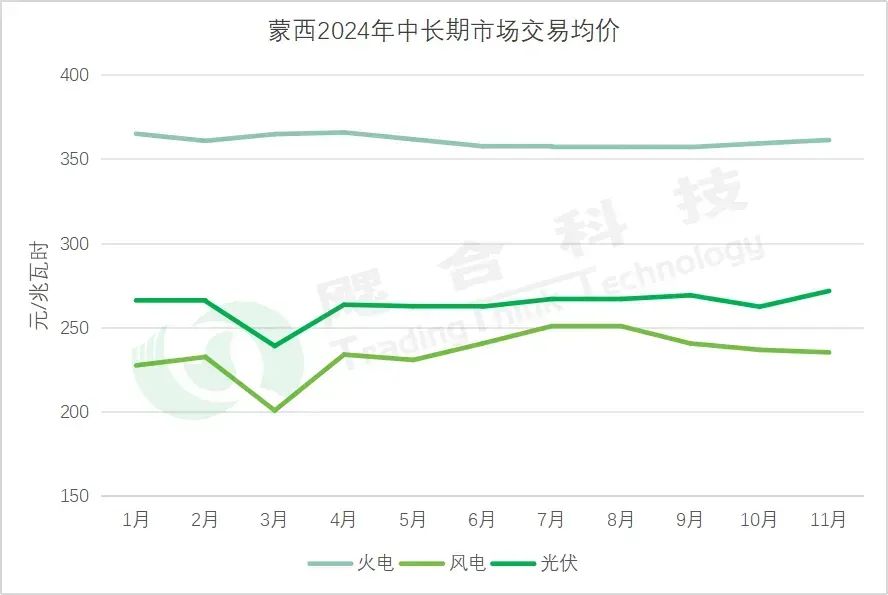從電力交易情況來看,蒙西2024年電力多邊交易區(qū)內(nèi)交易電量2665.27億千瓦時(shí),平均成交價(jià)格291.18元/兆瓦時(shí),新能源合約電量906.98億千瓦時(shí),平均交易價(jià)格221.26元/兆瓦時(shí)。其中風(fēng)電合約電量651.38億千瓦時(shí),平均交易價(jià)格213元/兆瓦時(shí);光伏合約電量220.25億千瓦時(shí),平均交易價(jià)格240.67元/兆瓦時(shí)。并將新能源交易品種全部視為綠電交易,設(shè)置環(huán)境價(jià)格,其中環(huán)境價(jià)值為30.8元/兆瓦時(shí)。