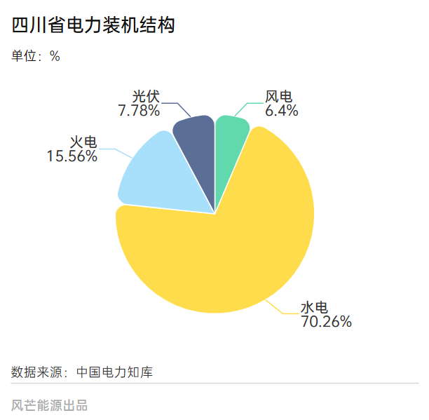 從裝機(jī)結(jié)構(gòu)來看,四川省是全國水電裝機(jī)第一大省,水電累計(jì)裝機(jī)9770萬千瓦,占比達(dá)到70.26%?;痣姙樗拇ㄊ〉诙箅娫矗b機(jī)占比15.56%。相比之下,新能源在總裝機(jī)中并不突出,風(fēng)電、光伏裝機(jī)規(guī)模分別890萬千瓦、1082萬千瓦,占比均不足10%。