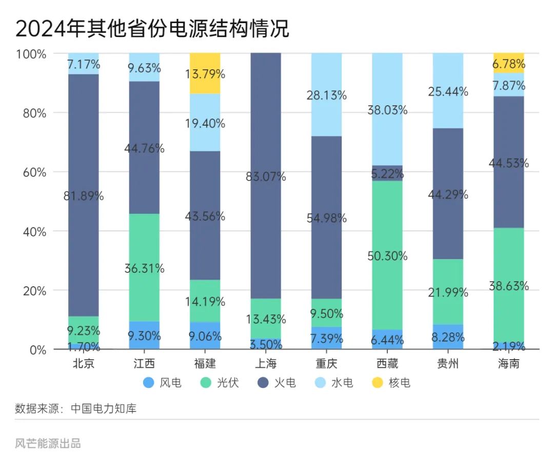 截至2024年12月底,上述8省電力總裝機(jī)均未超1億千瓦,其中,貴州、福建、江西電力裝機(jī)規(guī)模較高,分別達(dá)到9032萬千瓦、8864萬千瓦及7062萬千瓦;西藏電力總裝機(jī)尚不足1000萬千瓦。