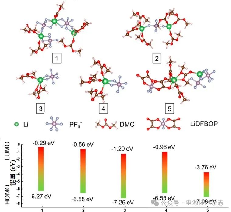 圖10 5種電解液分子在AIMD中的模擬結(jié)果以及溶劑化配合物的HOMO/LUMO能計(jì)算結(jié)果[113]