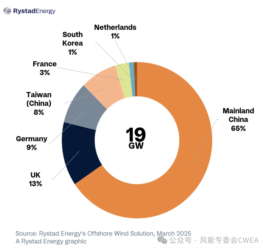 2025年預(yù)計全球海上風(fēng)電裝機(jī)容量19GW(來源:Rystad Energy)