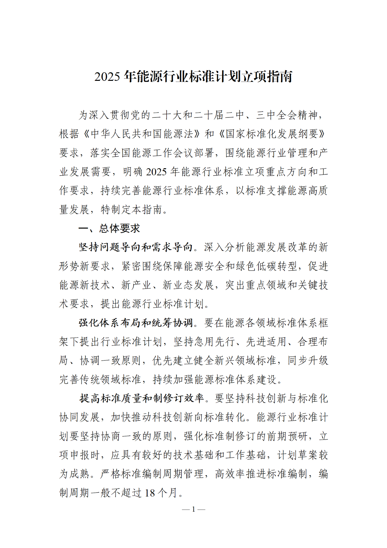 國家能源局綜合司關于印發(fā)《2025年能源行業(yè)標準計劃立項指南》的通知