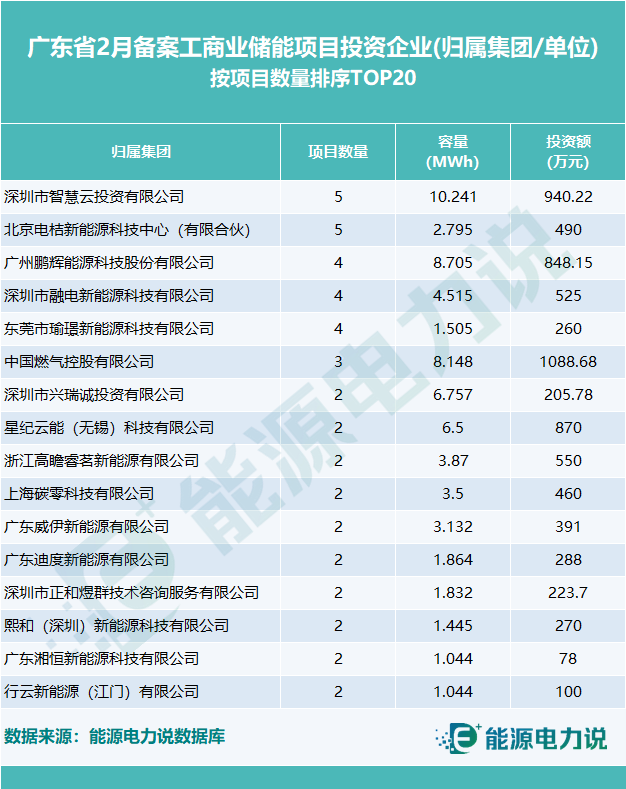 從投資方歸屬集團(tuán)(單位)項(xiàng)目總?cè)萘恳?guī)模來排序,肇慶新區(qū)投資集團(tuán)、華儲(chǔ)綠能、北京中關(guān)健體縣域基礎(chǔ)設(shè)施建設(shè)開發(fā)、肇慶高要高宏產(chǎn)業(yè)投資、中科中能科技、華商(廣州)投資、索英電氣、鵬輝能源、鴻運(yùn)氫能源、偉力得能源等集團(tuán)旗下單位參與了2月廣東大儲(chǔ)備案項(xiàng)目的投資建設(shè)。