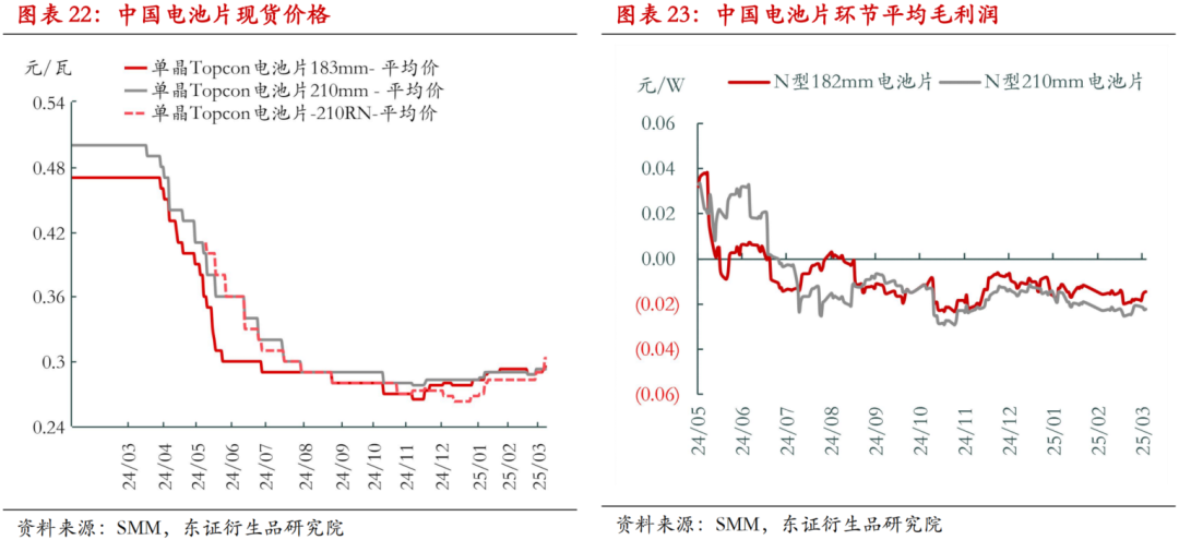 圖說:中國(guó)電池片現(xiàn)貨價(jià)格和平均毛利潤(rùn)