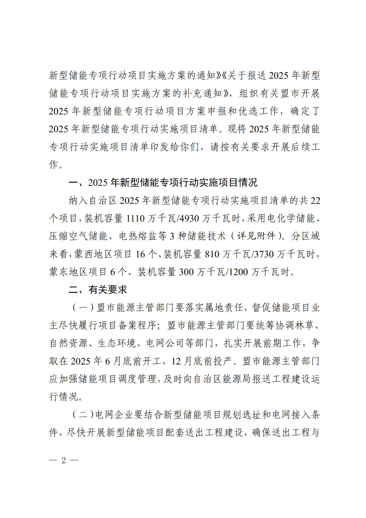 136號(hào)文在新能源、儲(chǔ)能行業(yè)引起軒然大波,對(duì)于新項(xiàng)目投資,大家紛紛進(jìn)入觀望,靜候省級(jí)政策出臺(tái)。3月12日,內(nèi)蒙古自治區(qū)能源局發(fā)布《關(guān)于加快新型儲(chǔ)能建設(shè)的通知》(內(nèi)能源電力字〔2025〕120號(hào))以及2025 年新型儲(chǔ)能專項(xiàng)行動(dòng)實(shí)施項(xiàng)目清單,以解決新能源、儲(chǔ)能這一對(duì)蹺蹺板平衡發(fā)展的難題,很好回答了136號(hào)文之后儲(chǔ)能發(fā)展問題。