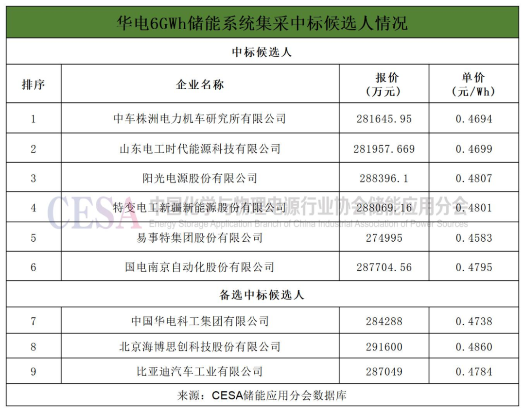 0.473元/Wh!中車/電工/陽光等六家入圍華電6GWh儲能系統(tǒng)框采