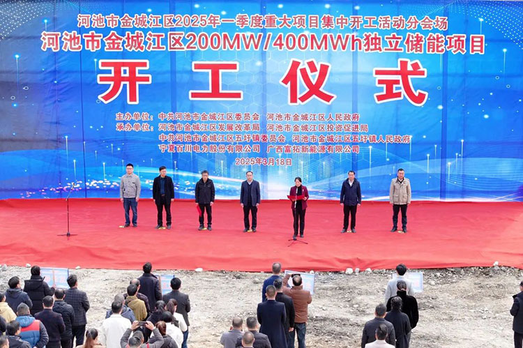 中國儲能網(wǎng)訊:3月18日,金城江區(qū)還在位于五圩鎮(zhèn)的工業(yè)集中區(qū)舉行廣西富拓新能源有限公司200MW/400MWh獨立儲能項目開工儀式。區(qū)委常委、常務副區(qū)長覃若禮宣布項目開工,區(qū)人大常委會副主任覃琴致辭、副區(qū)長鐘福祥主持開工儀式。