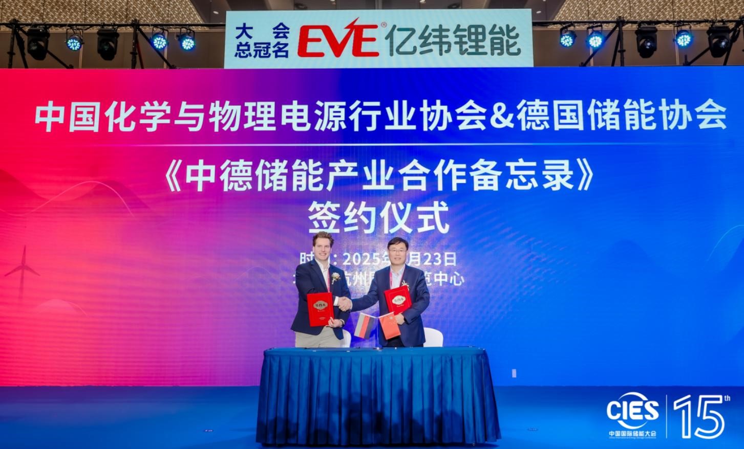 中國(guó)化學(xué)與物理電源行業(yè)協(xié)會(huì)秘書(shū)長(zhǎng)王澤深和德國(guó)儲(chǔ)能協(xié)會(huì)高級(jí)專家 Gerrit Lühring現(xiàn)場(chǎng)簽約。