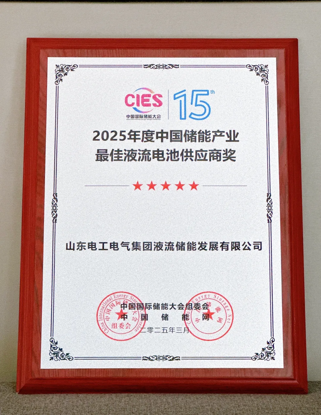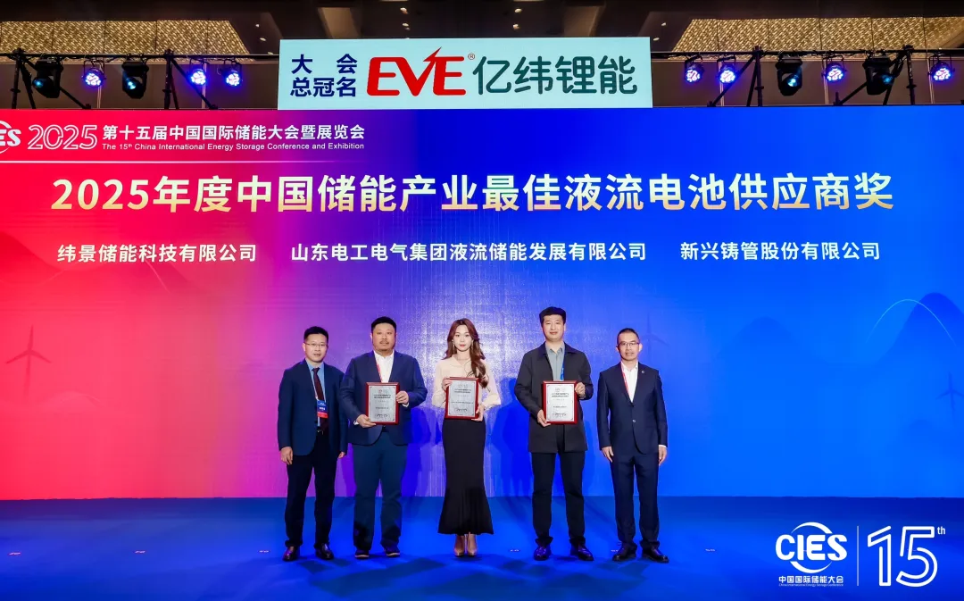 中國(guó)儲(chǔ)能網(wǎng)訊:2025年3月23日晚,在第十五屆中國(guó)國(guó)際儲(chǔ)能大會(huì)暨展覽會(huì)上,山東電工液儲(chǔ)憑借其在液流電池領(lǐng)域的卓越貢獻(xiàn)和持續(xù)創(chuàng)新,在眾多競(jìng)爭(zhēng)對(duì)手中脫穎而出,榮獲“2025年度中國(guó)儲(chǔ)能產(chǎn)業(yè)最佳液流電池供應(yīng)商獎(jiǎng)”!