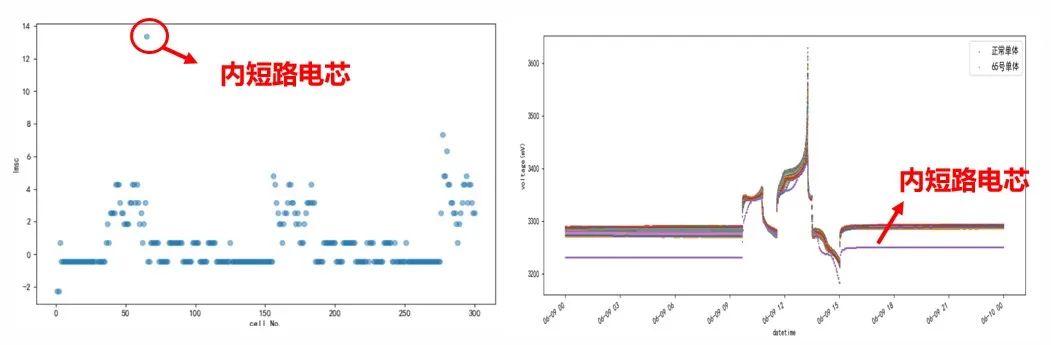 內(nèi)短路是大多數(shù)電池?zé)崾Э氐闹匾?,歷史儲(chǔ)能電站熱失控事故案例中有90%均源自?xún)?nèi)短路。內(nèi)短路從開(kāi)始出現(xiàn)異常到發(fā)生熱失控會(huì)經(jīng)歷數(shù)十到數(shù)百小時(shí),在故障早期會(huì)表現(xiàn)電壓曲線上某些特征量的異常。若電站能準(zhǔn)確識(shí)別、檢出早期內(nèi)短路電池并及時(shí)更換,則可以遏制其最終發(fā)展為熱失控。