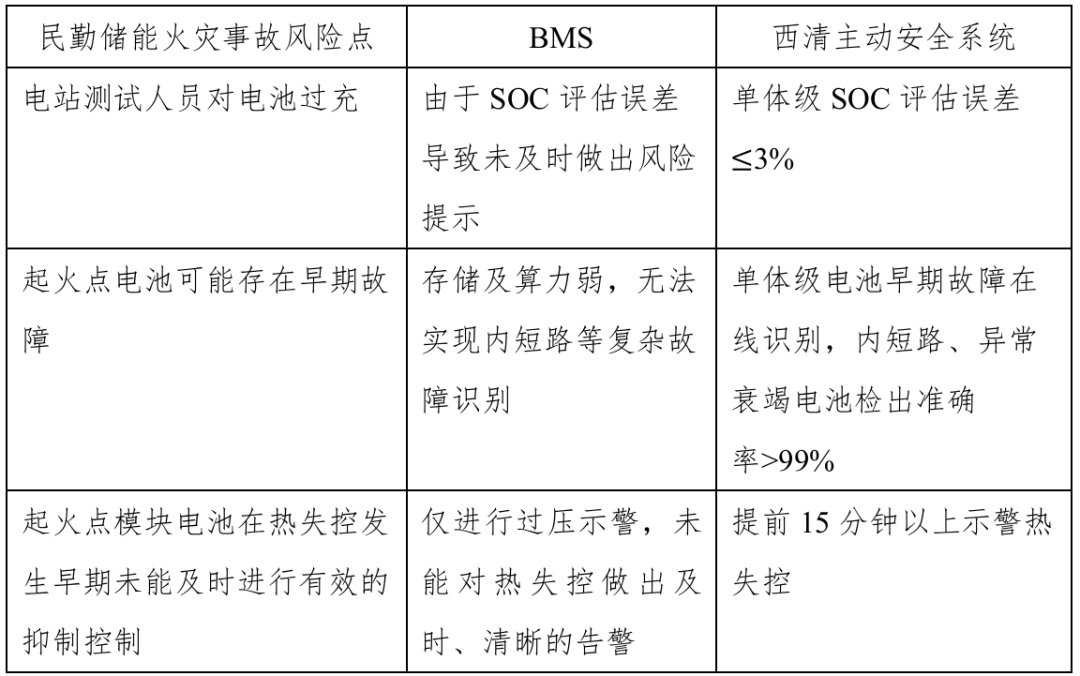 表2:西清主動(dòng)安全系統(tǒng)與BMS的安全防控能力比較