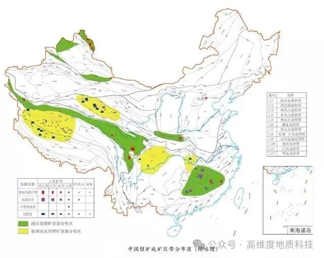 圖2 中國(guó)鋰礦成礦區(qū)帶分布圖(縮略圖)