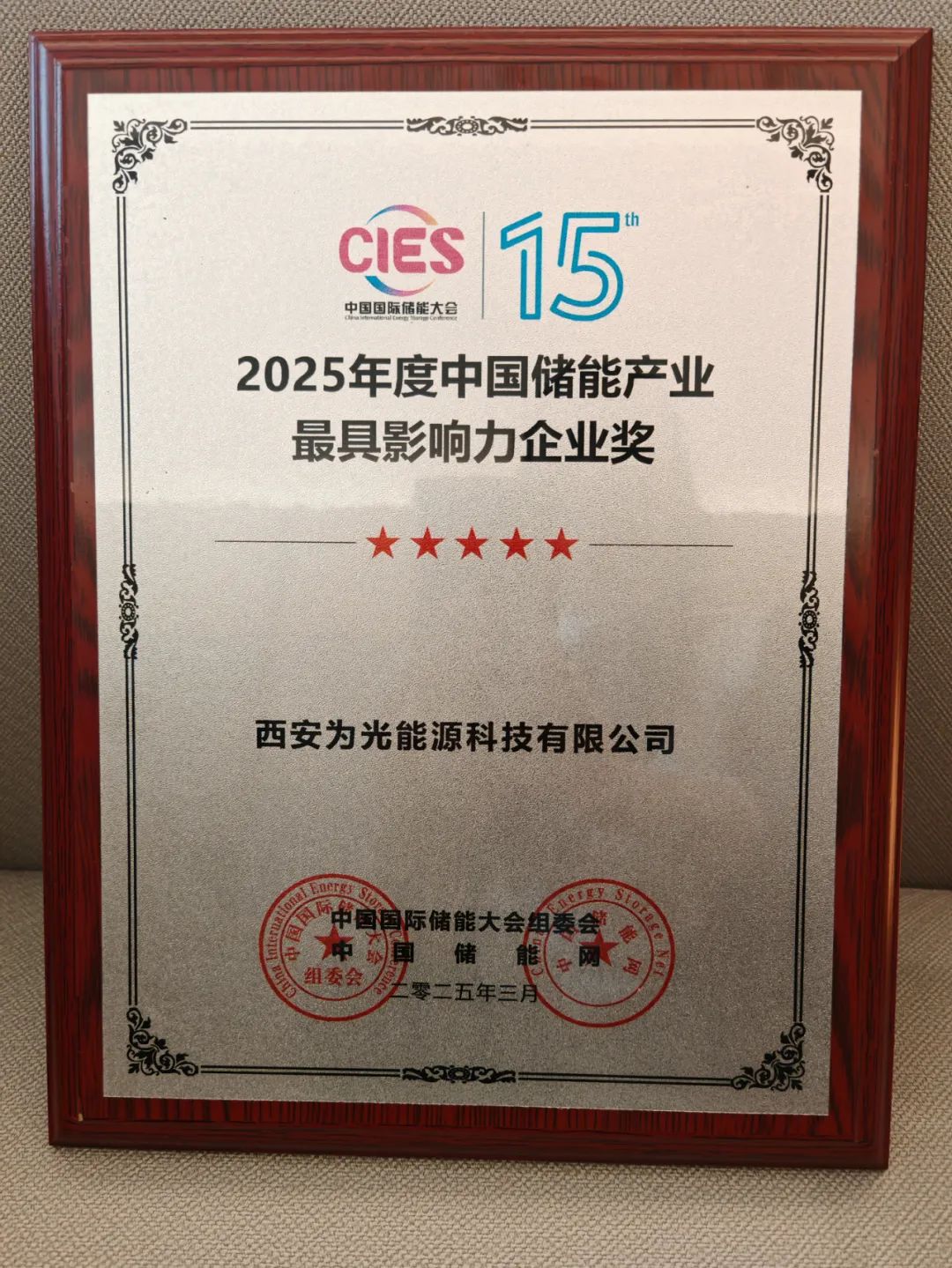 中國儲能網(wǎng)訊:3月23日,由中國化學與物理電源行業(yè)協(xié)會主辦的第十五屆中國國際儲能大會 (CIES2025)在杭州盛大開幕。為光能源受邀出席此次會議,并憑借行業(yè)領先的技術實力成功斬獲“2025年度中國儲能產(chǎn)業(yè)最具影響力企業(yè)”大獎。