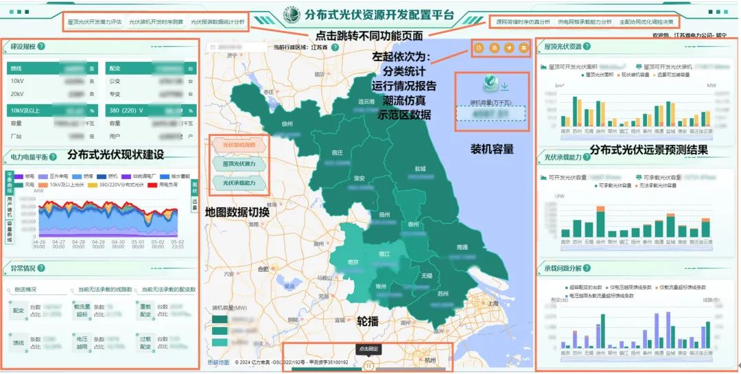 為解決光伏資源摸排難、接入電網(wǎng)影響評(píng)估難等問題,國網(wǎng)江蘇電力提前謀劃,去年5月建成了我國首個(gè)分布式光伏資源開發(fā)配置平臺(tái),實(shí)現(xiàn)江蘇范圍內(nèi)屋頂分布式光伏資源的精準(zhǔn)定位、電網(wǎng)承載力科學(xué)評(píng)估。平臺(tái)可通過分析區(qū)域光伏承載力薄弱點(diǎn),提出優(yōu)化光伏接入、促進(jìn)就近消納等建議。