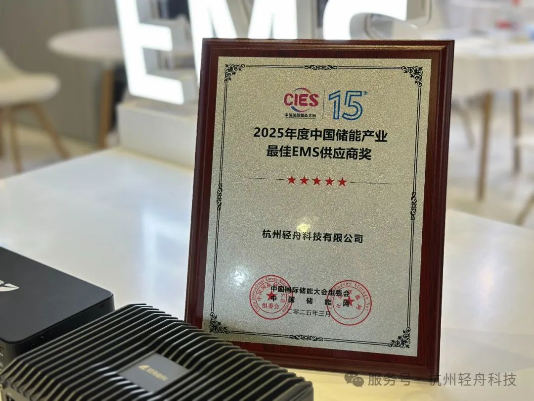 輕舟能科在本次大會(huì)上還榮獲了由中國國際儲能大會(huì)組委會(huì)頒發(fā)的“2025年度中國儲能產(chǎn)業(yè)最佳EMS供應(yīng)商獎(jiǎng)”獎(jiǎng)項(xiàng),充分表明了業(yè)界對于輕舟能科在儲能數(shù)字化領(lǐng)域影響力的高度認(rèn)可。