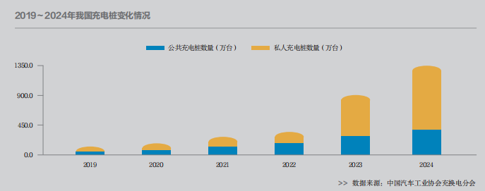 根據(jù)中國電動汽車充電基礎(chǔ)設(shè)施促進聯(lián)盟的統(tǒng)計,截至2024年12月底,我國電動汽車充電設(shè)施總數(shù)達(dá)到1281.8萬臺,同比增長49.1%;其中公共充電設(shè)施357.9萬臺,私人充電設(shè)施923.9萬臺。按照2025年1月公安部發(fā)布的全國新能源汽車保有量3140萬輛計算,我國車樁比為2.44:1。2024年,我國電動汽車充電設(shè)施增量為422.2萬臺,月均增長35.2萬臺。全年充電量突破1100億千瓦時,同比增長38%。全國高速公路服務(wù)區(qū)累計建成充電樁3.5萬臺,服務(wù)區(qū)覆蓋率達(dá)到98%。