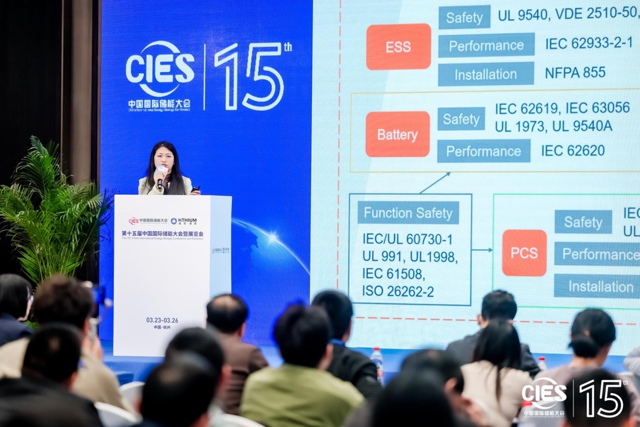 在3月24日下午進(jìn)行的儲能消防、安全與檢測認(rèn)證專場中,SGS 通標(biāo)標(biāo)準(zhǔn)技術(shù)服務(wù)有限公司儲能技術(shù)經(jīng)理劉歡做了題為《儲能系統(tǒng)相關(guān)國際標(biāo)準(zhǔn)解析》的主題報(bào)告演講。
