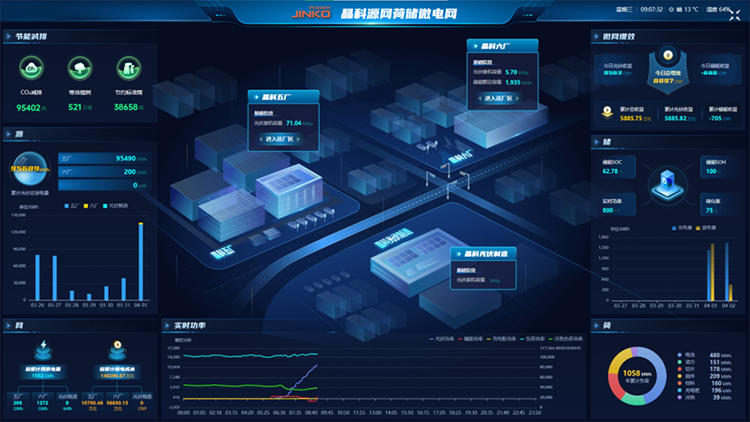 微電網(wǎng)是一種基于數(shù)智化能源管理平臺(tái)的智慧能源解決方案,可廣泛應(yīng)用于產(chǎn)城融合度高、土地資源集約利用度高、以加工制造業(yè)為主的工業(yè)園區(qū) 。響應(yīng)國(guó)家發(fā)展改革委、國(guó)家能源局《關(guān)于推進(jìn)電力源網(wǎng)荷儲(chǔ)一體化和多能互補(bǔ)發(fā)展的指導(dǎo)意見(jiàn)》中關(guān)于“在工業(yè)負(fù)荷大、新能源條件好的地區(qū)開(kāi)展源網(wǎng)荷儲(chǔ)一體化綠色供電園區(qū)建設(shè)”的倡議,晶科科技源網(wǎng)荷儲(chǔ)微電網(wǎng)擬接入三處工業(yè)園區(qū)的分布式電源,可接入容量預(yù)計(jì)最高可突破70MW,同時(shí)廠區(qū)配備多臺(tái)儲(chǔ)能設(shè)備、充電樁。