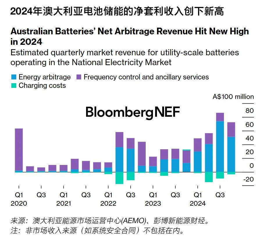 2024年國家電力市場(NEM)中大型電池儲能獲得的凈套利收入同比增幅