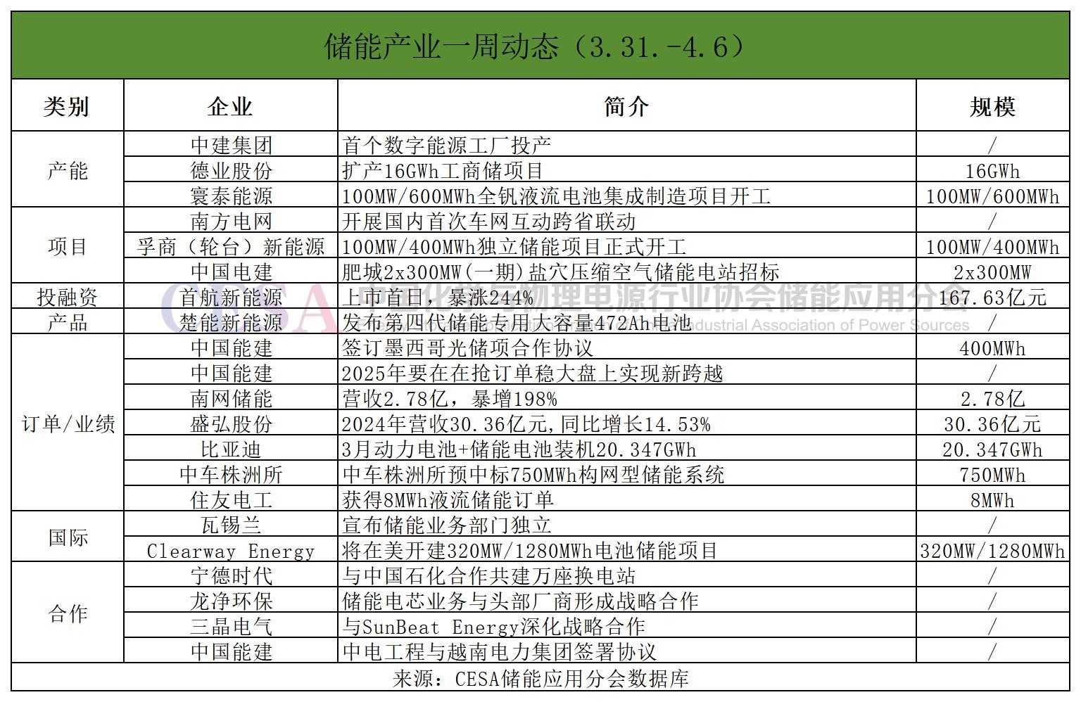 訂單/業(yè)績方面,比亞迪3月動(dòng)力電池+儲(chǔ)能電池裝機(jī)20.347GWh;南網(wǎng)儲(chǔ)能2024年?duì)I收2.78億,暴增198%;中車株洲所預(yù)中標(biāo)750MWh構(gòu)網(wǎng)型儲(chǔ)能系統(tǒng);住友電工獲得8MWh液流儲(chǔ)能訂單;中國能建董事長表示,2025年要在在搶訂單穩(wěn)大盤上實(shí)現(xiàn)新跨越。