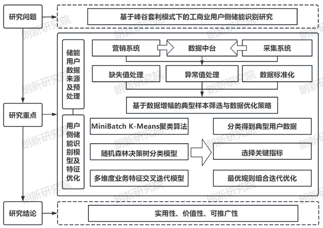 本文以識別峰谷套利模式下的工商業(yè)用戶側(cè)儲能為目標(biāo),結(jié)合儲能投運策略和負(fù)荷曲線變化,構(gòu)建典型特征指標(biāo)體系,通過MiniBatch K-Means聚類分群、隨機(jī)森林特征優(yōu)選及多維度交叉迭代模型,精準(zhǔn)識別已裝儲能用戶,助力電網(wǎng)企業(yè)用戶側(cè)儲能資源排查和統(tǒng)一管理工作開展。