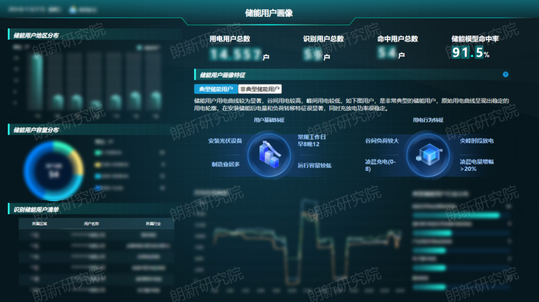 在識別模型的基礎(chǔ)上,進(jìn)一步分析并構(gòu)建了儲能用戶特征畫像,能夠準(zhǔn)確把握當(dāng)前區(qū)域內(nèi)儲能用戶的用電負(fù)荷特性及各行業(yè)容量配置的概況,為儲能負(fù)荷調(diào)節(jié)奠定基礎(chǔ)。