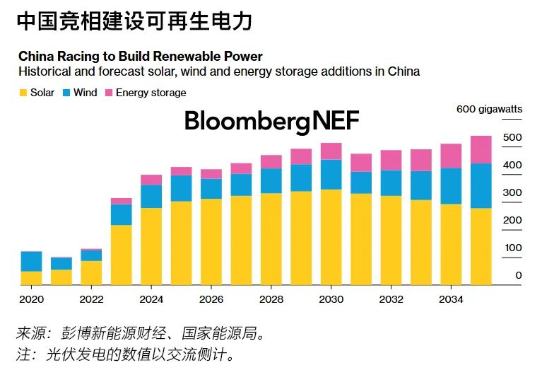 彭博新能源財經(jīng)對中國2025年風(fēng)電和光伏新增裝機容量的預(yù)測(以交流側(cè)計)