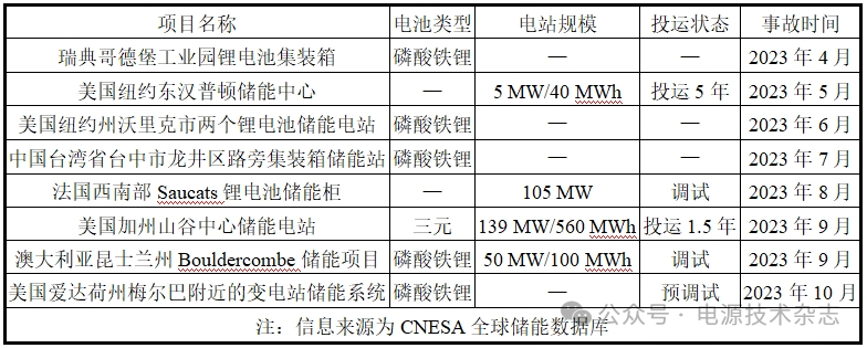 表1 部分發(fā)生在2023年的儲能電站火災(zāi)事故