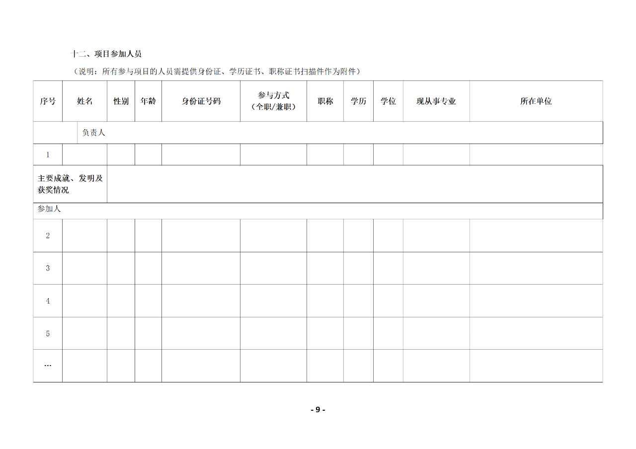 8.項(xiàng)目負(fù)責(zé)人年齡一般不超過(guò)60周歲(1965年4月8日以后出生),項(xiàng)目負(fù)責(zé)人(兩院院士除外)將在項(xiàng)目實(shí)施期內(nèi)到達(dá)法定退休年齡的,應(yīng)由項(xiàng)目申報(bào)單位出具能確保項(xiàng)目可履約實(shí)施的承諾函(如返聘、延遲退休等)。如聘用非本單位在職人員作為項(xiàng)目負(fù)責(zé)人的,須提供聘用的有效證明材料作為申報(bào)材料一并提交。“揭榜掛帥”項(xiàng)目負(fù)責(zé)人不在限項(xiàng)范圍內(nèi),已承擔(dān)科技“突圍”工程項(xiàng)目負(fù)責(zé)人不得申報(bào)。