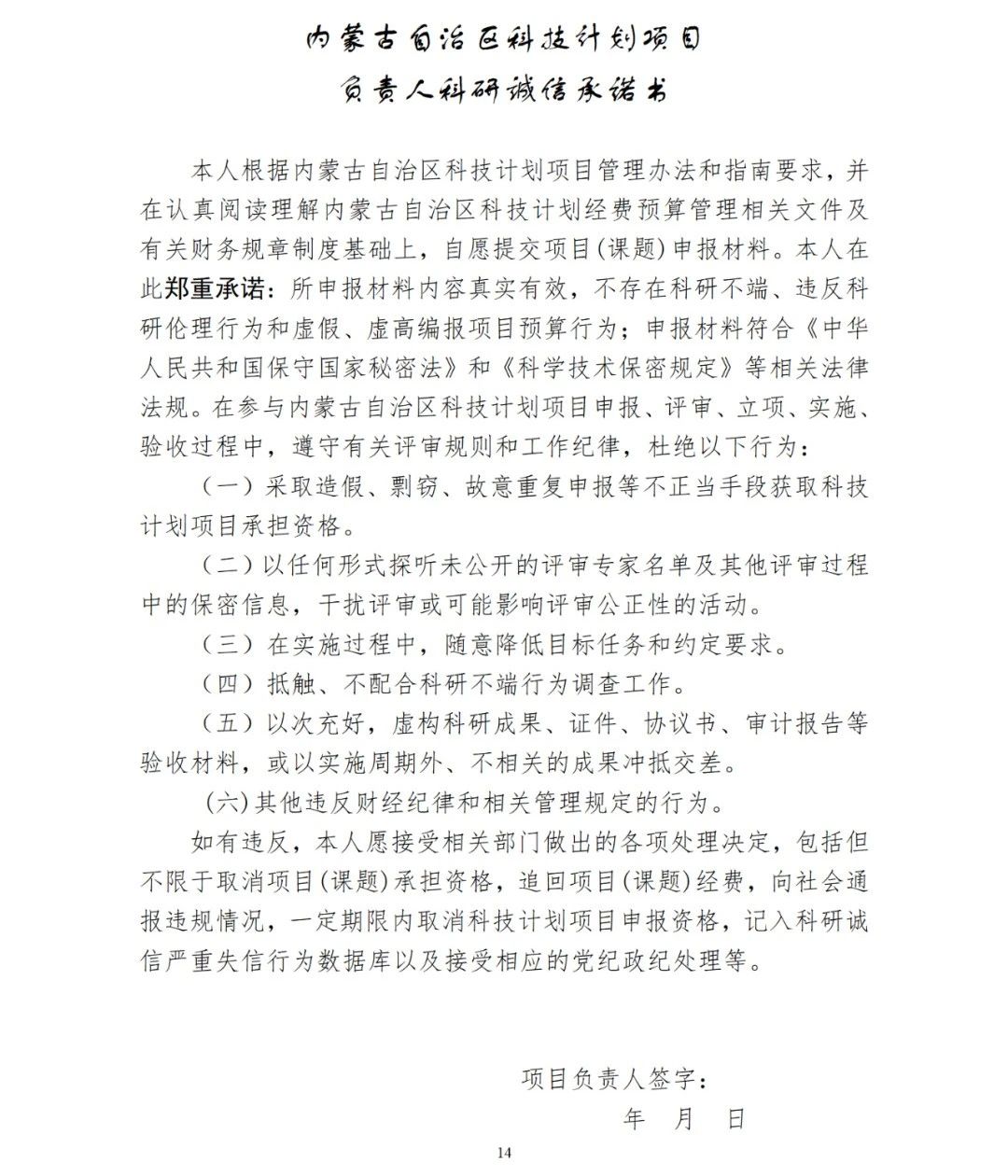 10.所有申報(bào)單位和項(xiàng)目、課題負(fù)責(zé)人應(yīng)遵守科研誠(chéng)信管理要求,無(wú)在懲戒執(zhí)行期內(nèi)的科研嚴(yán)重失信行為記錄和相關(guān)社會(huì)領(lǐng)域信用“黑名單”記錄。項(xiàng)目負(fù)責(zé)人應(yīng)承諾所提交材料的真實(shí)性,申報(bào)單位應(yīng)當(dāng)對(duì)申請(qǐng)人的申請(qǐng)資格負(fù)責(zé),并對(duì)申請(qǐng)材料的真實(shí)性和完整性進(jìn)行審核。