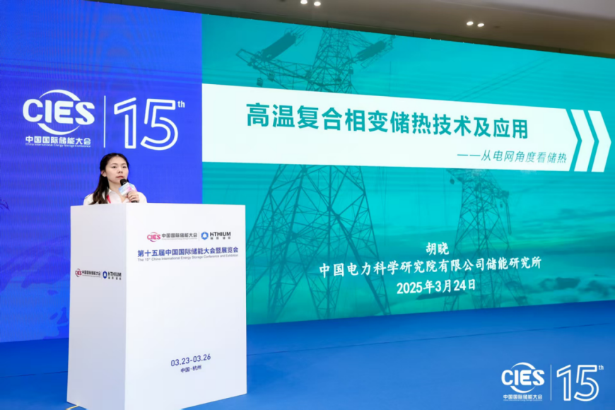 在3月24日下午的儲熱與長時儲能專場中,中國電力科學研究院有限公司儲能研究所教授級高級工程師胡曉作了題為《高溫復合相變儲熱技術(shù)及應(yīng)用》的主旨演講。