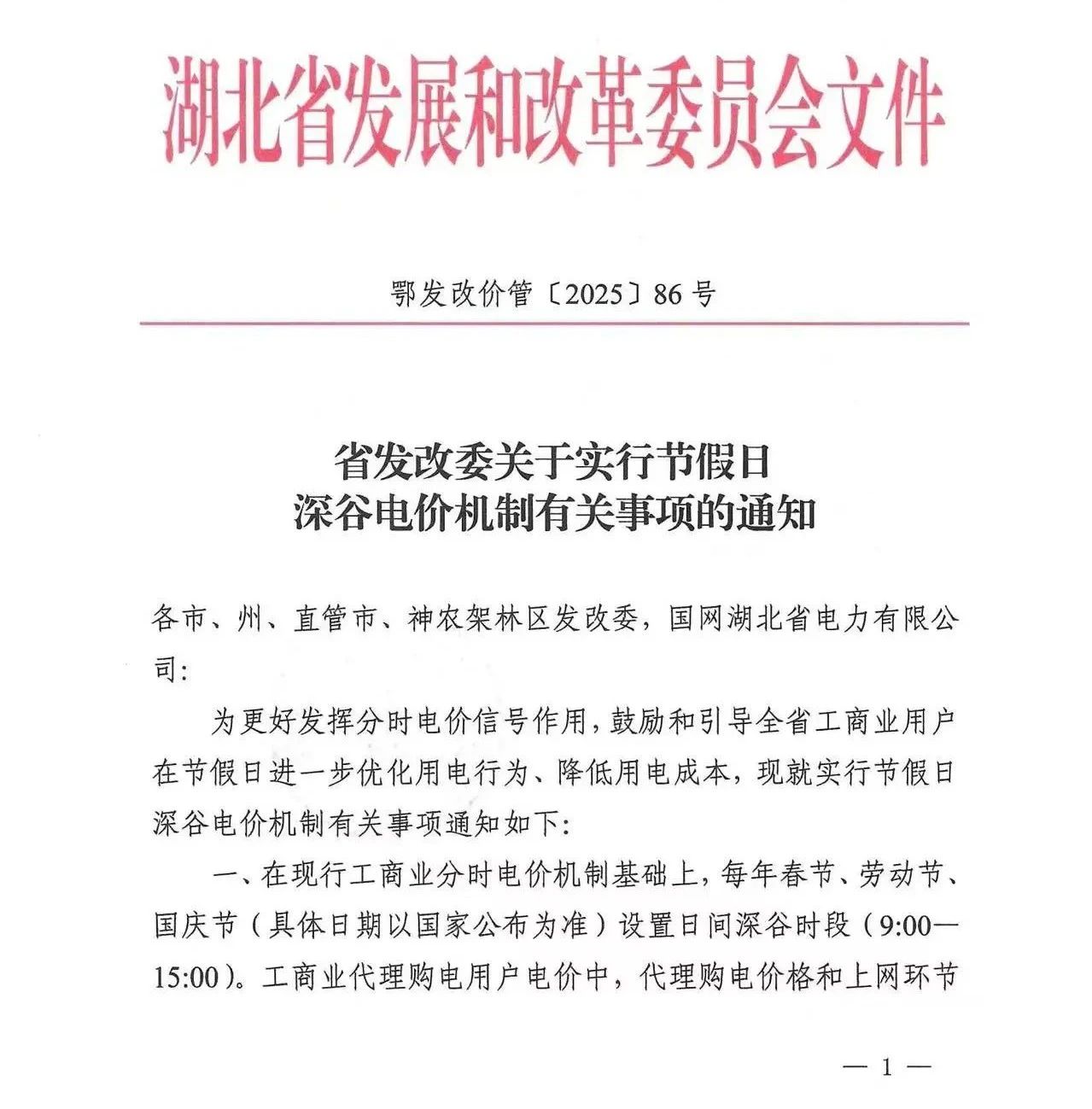 中國(guó)儲(chǔ)能網(wǎng)訊:4月8日,湖北發(fā)改委發(fā)布《關(guān)于實(shí)行節(jié)假日深谷電價(jià)機(jī)制有關(guān)事項(xiàng)的通知》。