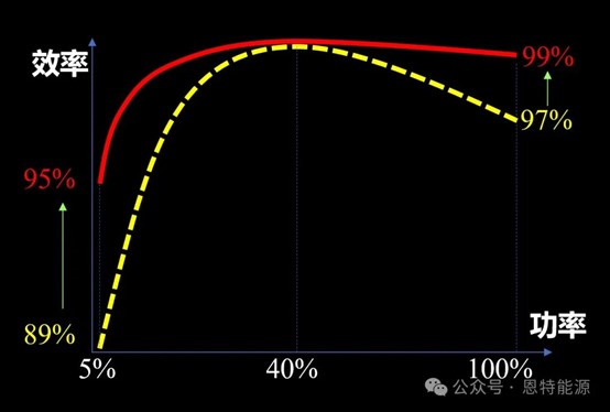 同功率段全球最高效率。采用碳化硅器件高速驅(qū)動(dòng)保護(hù)技術(shù)、磁集成技術(shù)和變頻調(diào)制技術(shù),提高開關(guān)頻率,減小開關(guān)損耗;減少磁芯損耗和漏感,降低傳導(dǎo)損耗,輕載效率達(dá)95%以上,滿載效率可達(dá)99%,全行業(yè)最高,系統(tǒng)循環(huán)效率提高4%以上,對(duì)應(yīng)用戶收益提升4個(gè)百分點(diǎn)以上。