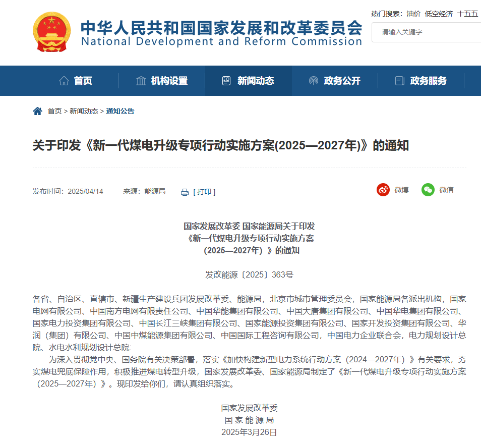 中國儲能網訊:4月14日,國家發(fā)展改革委、國家能源局發(fā)布關于印發(fā)《新一代煤電升級專項行動實施方案(2025—2027年)》(以下簡稱《方案》)的通知。鼓勵完善電力現(xiàn)貨市場、輔助服務市場和煤電容量電價機制,合理體現(xiàn)煤電機組高效調節(jié)價值和環(huán)境價值。